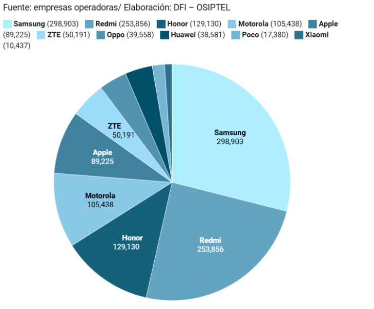 Entre las marcas más afectadas destacan Samsung (298.903 casos), Redmi (253.856), Honor (129.130), Motorola (105.438) y Apple (89.225).