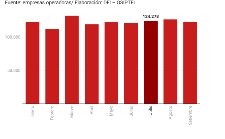 Según el Observatorio Nacional de Seguridad Ciudadana del Ministerio del Interior, entre enero y setiembre se registraron 8.920 denuncias por hurto de celular, la mayoría en Lima Metropolitana.