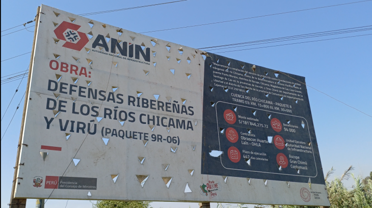 La obra, a cargo de la empresa española OHLA bajo la supervisión de la Autoridad Nacional de Infraestructura (ANIN), tiene un avance físico aproximado del 34%. No obstante, desde hace más de dos meses las maquinarias permanecen detenidas y los puntos críticos del cauce quedaron sin protección, justo cuando se aproxima una nueva temporada de lluvias.