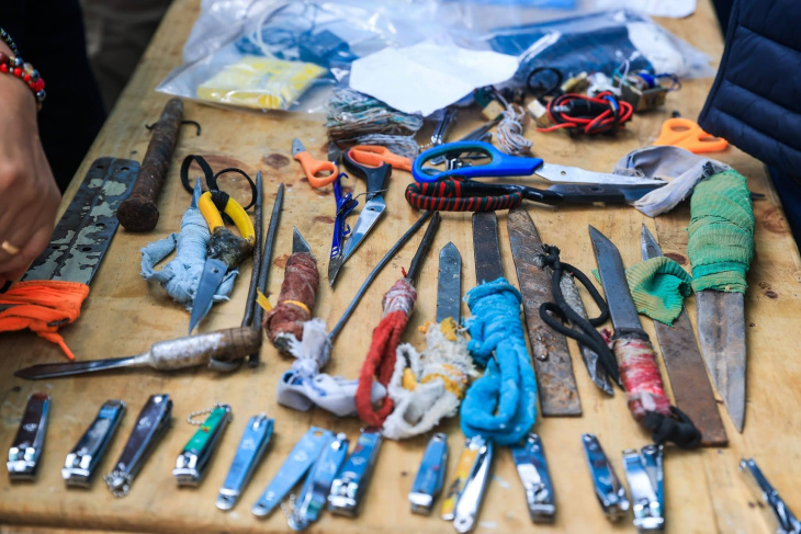 Armas punzocortantes, así como un bate de béisbol.