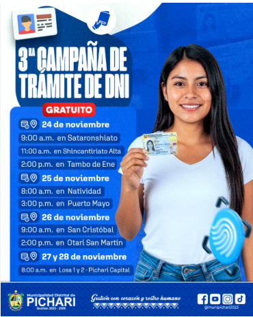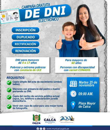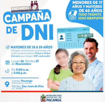 El Registro Nacional de Identificación y Estado Civil (RENIEC), junto con diversas municipalidades del país, realizará jornadas gratuitas de emisión del DNI electrónico (DNIe) los días lunes 24 y martes 25 de noviembre. Estas campañas están dirigidas a menores de edad, adultos con DNI caducado y personas en situación de pobreza o pobreza extrema, facilitando la obtención o renovación del documento digital que permite firma electrónica y acceso seguro a trámites en línea.