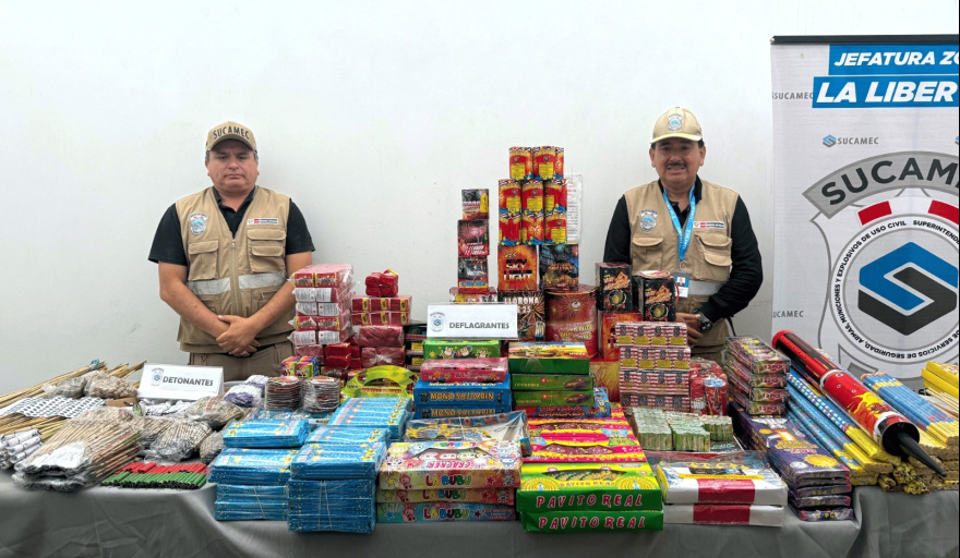 Un total de 197 kilos de pirotécnicos que eran vendidos y almacenados sin medidas de seguridad mínimas fueron incautados de manera preventiva por inspectores de la Superintendencia Nacional de Control de Servicios de Seguridad, Armas, Municiones y Explosivos de Uso Civil (Sucamec) durante dos intervenciones inopinadas en las ciudades de Trujillo y Chiclayo, al norte del país.