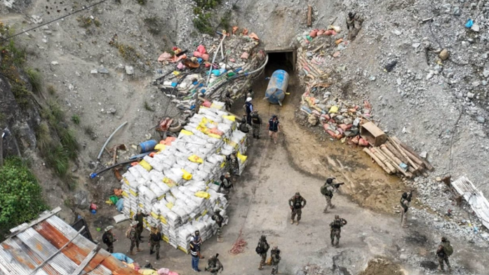 A aproximadamente 50 metros de profundidad, las fuerzas del orden fueron atacadas a balazos, lo que desencadenó un enfrentamiento armado con una presunta organización criminal conocida como “Los Duros de Galindo”. El intercambio de disparos se prolongó durante varias horas, evidenciando la resistencia armada de estos grupos frente a la intervención estatal.