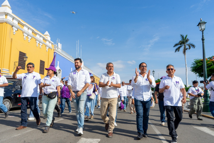 Trujillo fue escenario de una intensa jornada política encabezada por Mesías Guevara, candidato a la Presidencia del Perú por el Partido Morado, quien realizó un recorrido acompañado por Yvo Hora, candidato con el número 1 al Senado por La Libertad, Alan Alcalde, candidato a la cámara de diputados con el número 1, así como por un nutrido grupo de candidatos y simpatizantes. La actividad se inició en la Plaza de Armas, donde Guevara ofreció declaraciones a los medios de comunicación, para luego continuar con una caravana por el centro histórico de la ciudad.