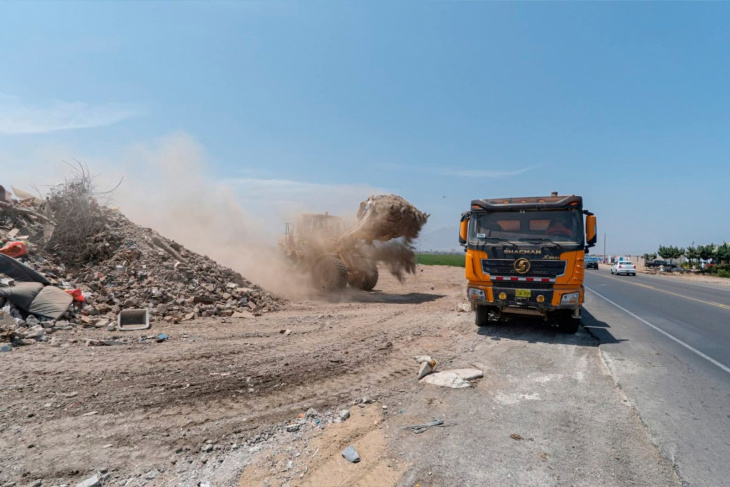 Para estas labores, la empresa ha dispuesto maquinaria pesada como volquetes y cargadores frontales. Esto permite agilizar el retiro y traslado de los residuos hacia zonas autorizadas.